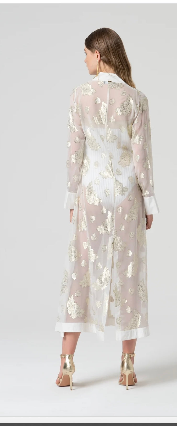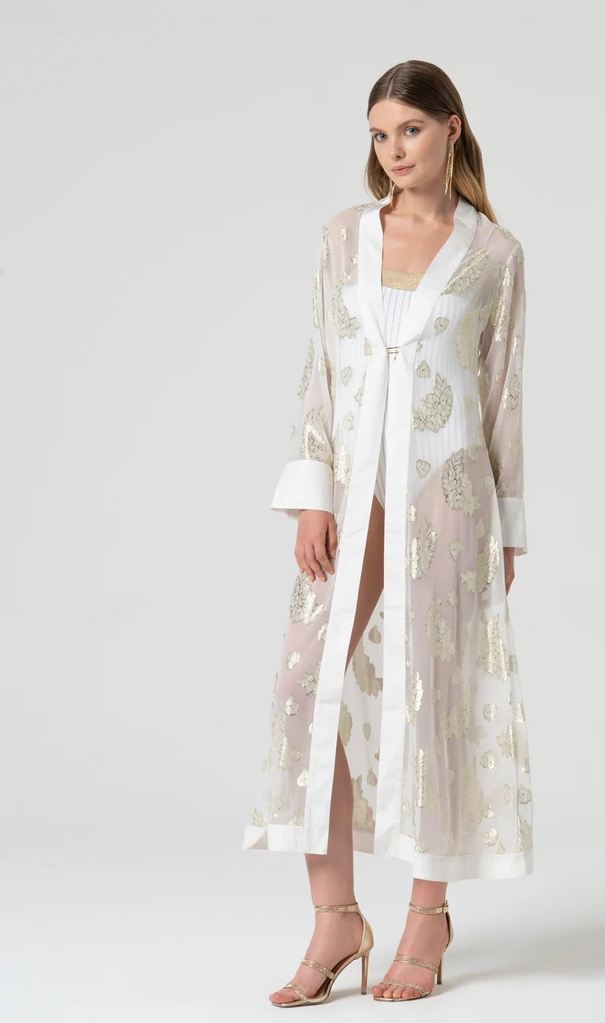 Kaftano regular lungo con lurex, e con maniche lunghe.