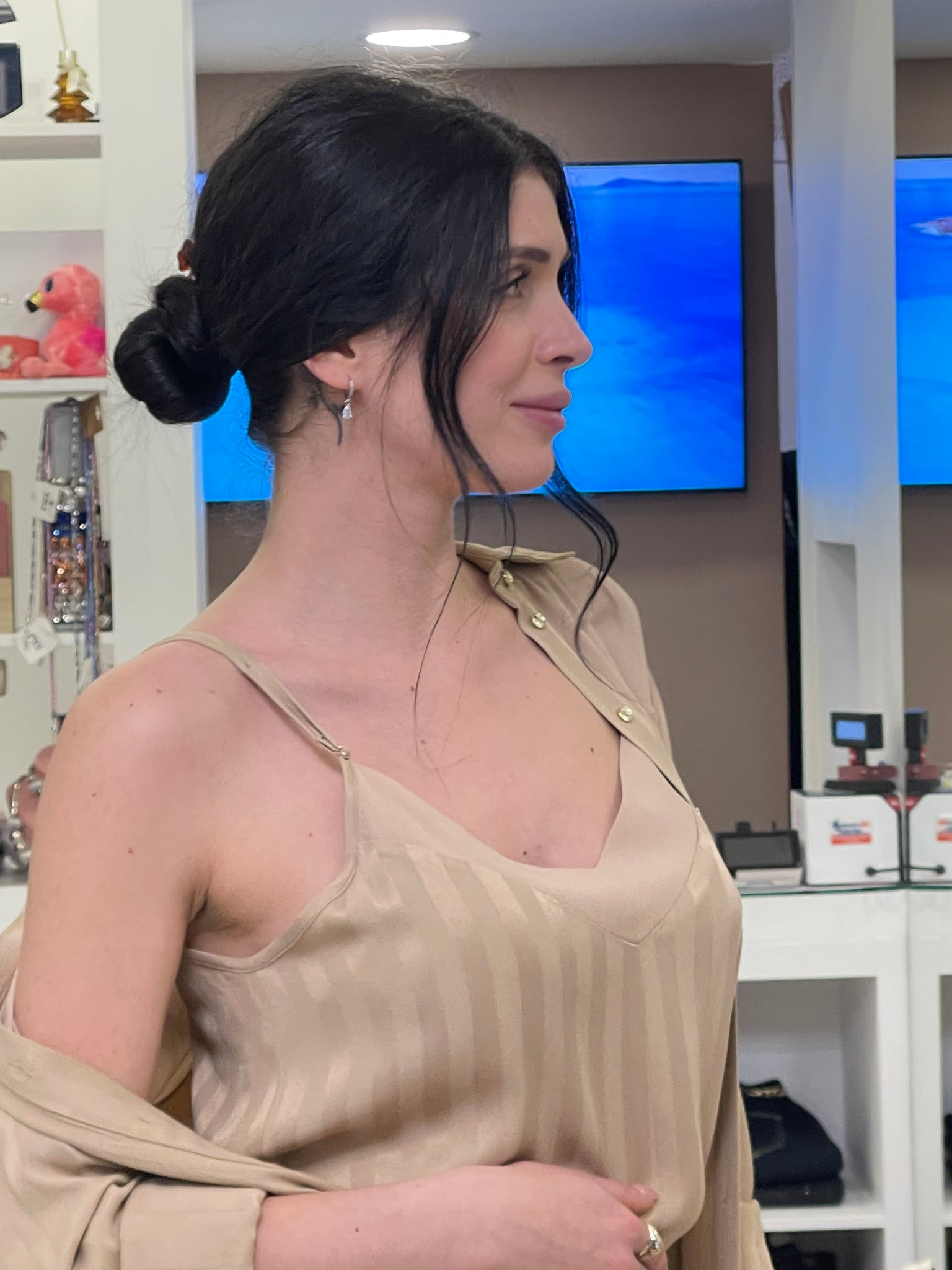 Top senza maniche linea ad A, scollo a V, e con bretelline sottili.